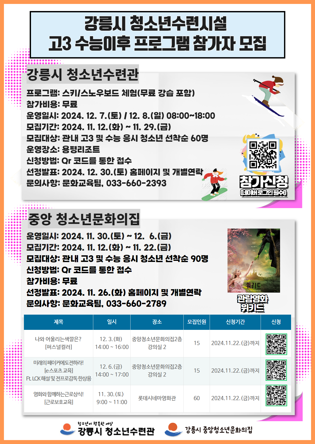 2024년 강릉시 청소년수련관 수능이후 프로그램 청소년스키캠프 Exciting Winter 참가자 모집