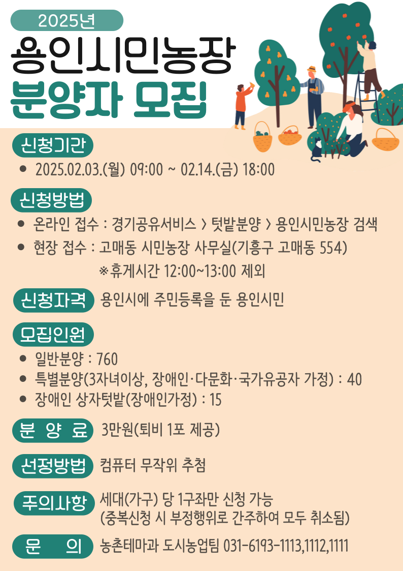 - 2025년 용인시민농장 텃밭분양 신청안내 "꼭" 첨부파일 내용 확인하시고 신청부탁드립니다.