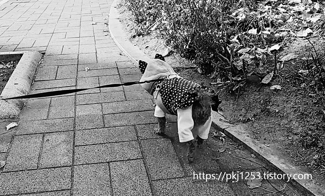 강아지와 함께 추운 겨울 한낮에 산책이라니, 따뜻한 겨울의 소소한 즐거움이네요! 초코가 두꺼운 털옷을 입고 산책길을 걸으며 코로 차가운 공기를 맡는 모습을 상상하니 정말 귀여울 것 같아요.