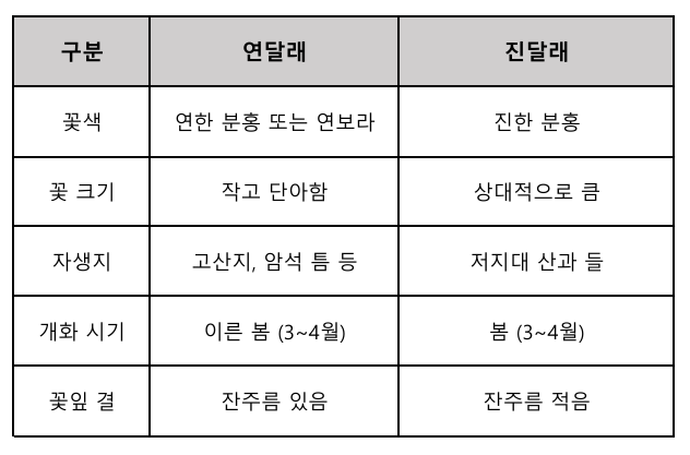연달래와 진달래의 차이를 알아보며