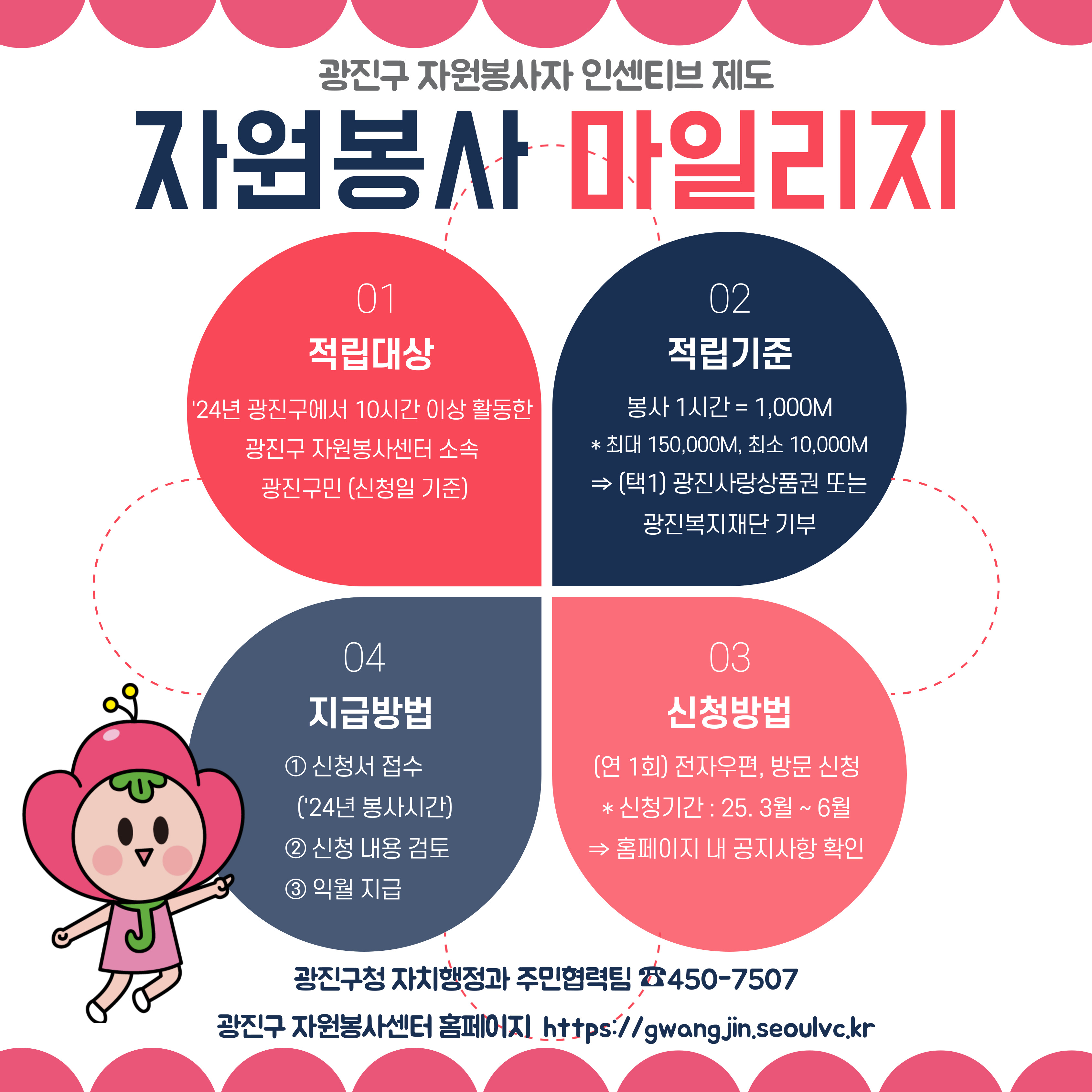 ▢ 대상 : 전년도 광진구에서 10시간 이상 활동한 광진구 자원봉사센터 소속 광진구민(신청일 기준)