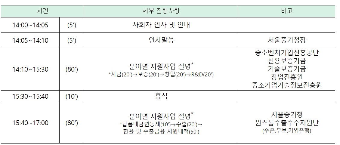 5. 내 용 : 중소벤처기업부 관련 분야별 설명 및 1:1 상담 진행