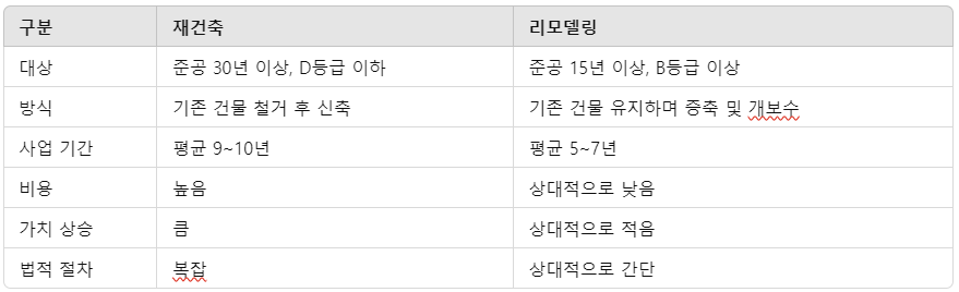 재건축과 리모델링 중 어떤 방식을 선택할지는 해당 아파트의 상태, 용적률, 입주민들의 의견, 재정 상황 등을 종합적으로 고려해야 합니다.