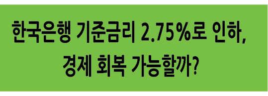 한국은행이 2025년 2월 25일, 기준금리를 기존 3.0%에서 2.75%로 0.25%포인트 인하했습니다.