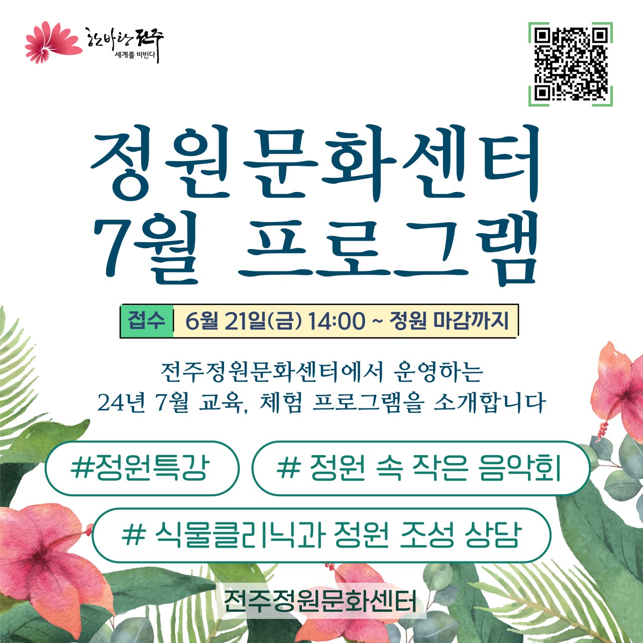 아울러 전주정원문화센터에서는 7월 정원 교육 프로그램을 운영하오니 관심 부탁드립니다.