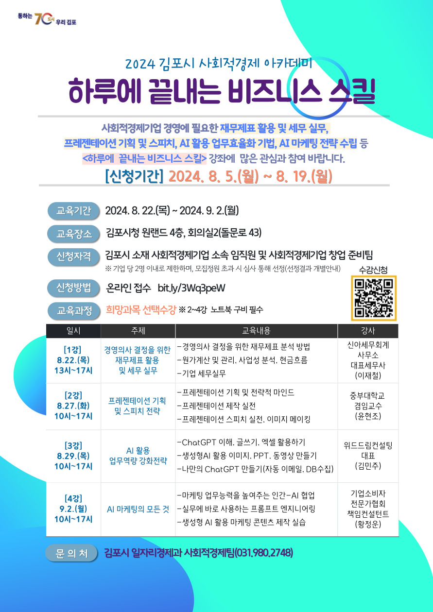 '재무제표 활용/ 세무실무', '프레젠테이션 기획 및 스피치 전략', 'AI 활용 업무 효율화 기법', 'AI 마케팅 전략 수립' 등
