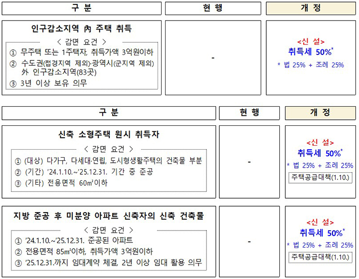 인구감소지역 내 주택 취득세 감면 신설…법인·공장 지방이전 감면 연장