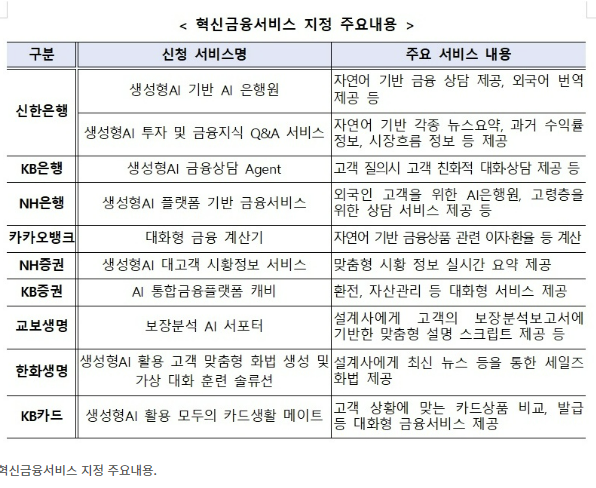 금융위, 생성형 AI 활용한 혁신금융서비스 10개 첫 지정